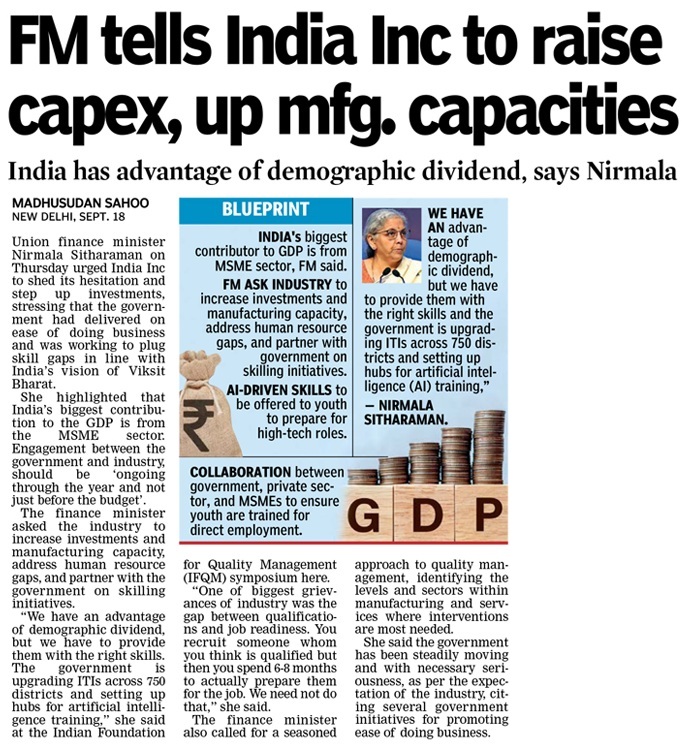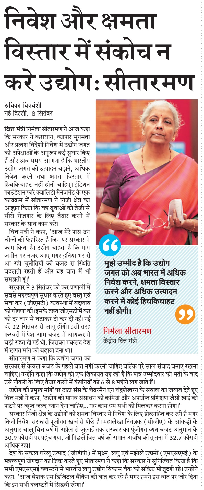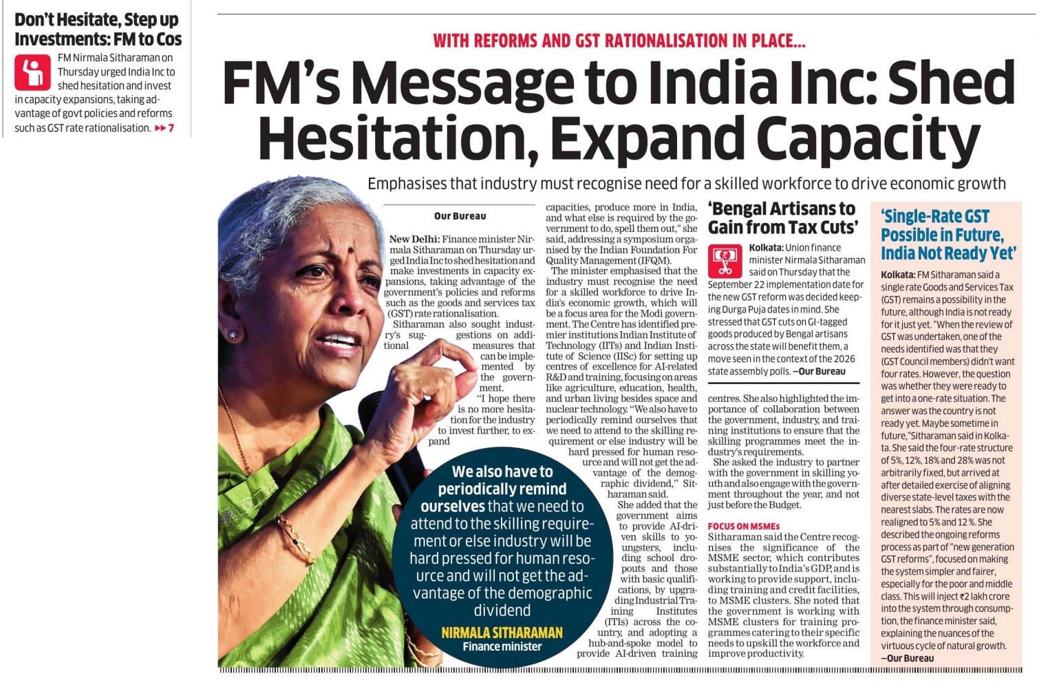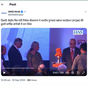 The two-day IFQM Symposium in Delhi successfully concluded on Friday. The event brought together CEOs, CXOs, academicians, and students, and was inaugurated by Smt. Nirmala Sitharaman, Hon’ble Minister for Finance and Corporate Affairs, Government of India. In her address, she emphasized the vital role of quality in business processes as India advances toward becoming a global economic powerhouse.